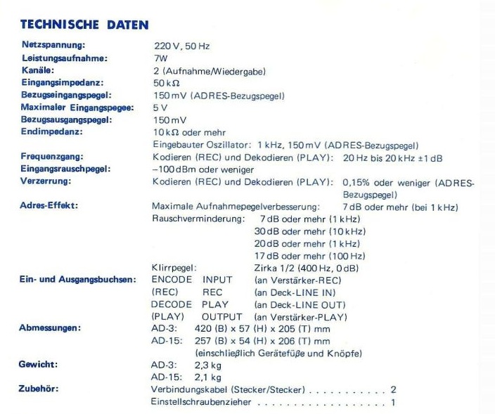 Automatic Dynamic Range Expansion System (adres) for tape recorders - AUREX model AD-15